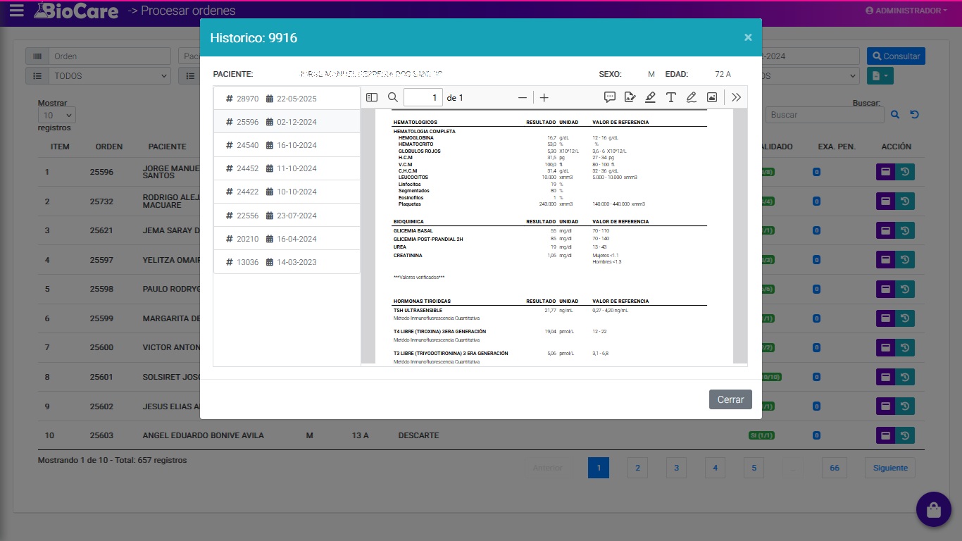 Abarcando desde la generación de órdenes hasta la entrega final de los resultados, optimizando tanto los procesos administrativos como los analíticos.